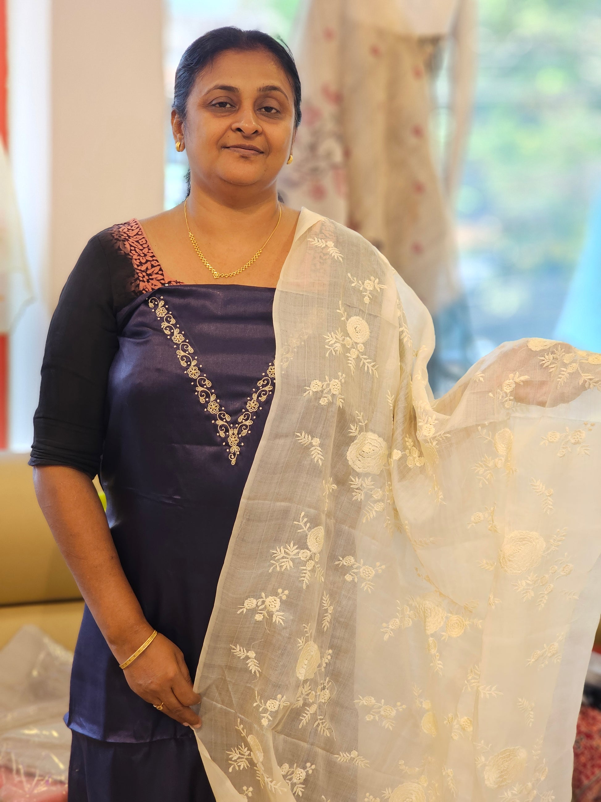 Expertly crafted from pure tussar silk, this salwar material offers luxurious comfort and elegant style. The 2.5m long top and dupatta feature intricate threadwork detailing, while the 2m premium cotton bottom completes the set with a matching plain color. Experience the undeniable benefits of high-quality silk and cotton in one stunning ensemble. Custom Hand embroidery possible on request.